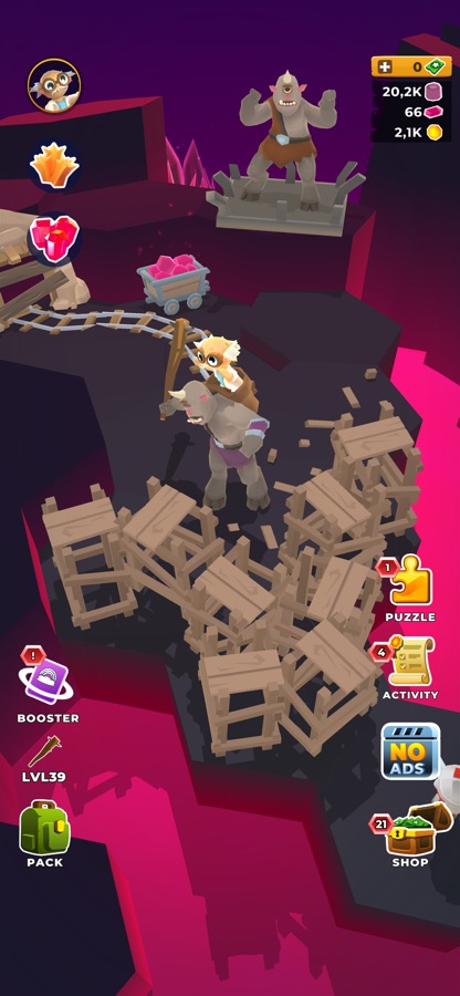 • У Тора есть его молот, у Нептуна — трезубец, а в этой игре вы наделены могущественной киркой, с помощью которой любой человек с одинаковой лёгкостью разобьёт камень и победит чудовищ, раскопает минералы и добудет золото в шахтах. Вы можете повысить божественную продуктивность на восьми различных уровнях, и собрать ещё больше ресурсов для строительства райского острова.