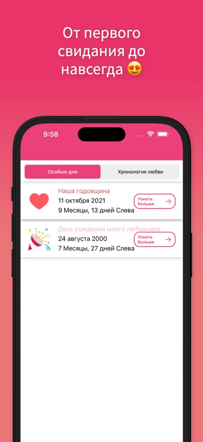 Скачайте приложение Любовные дни — счетчик любви для iOS бесплатно - последняя версия (2.9.4) уже доступна для установки на ваш iPhone или iPad.
