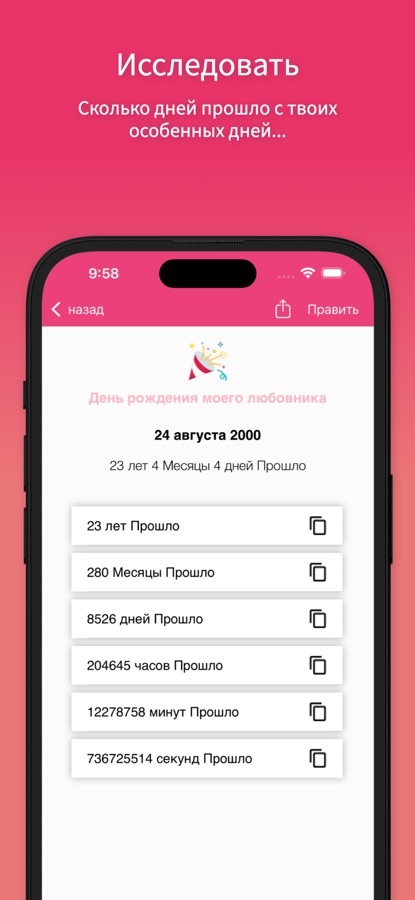 Отсчитывайте Каждую Секунду: Отслеживайте, сколько времени вы влюблены, до самой секунды, и наслаждайтесь путешествием, которое вы разделили.