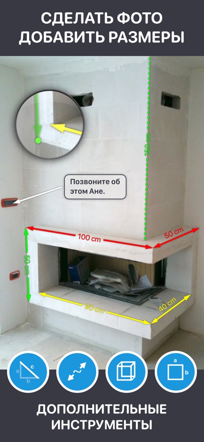 Изготовление бумажных эскизов объектов – достаточно утомительная работа. Необходимо нарисовать объект, указать его размеры и убедиться, что другим людям будет понятно, что вы имеете в виду. С этим часто возникают проблемы. My Measures – это мощное приложение для хранения информации о размерах объектов и обмена этой информацией. Просто сделайте фотоснимок объекта и добавьте размеры – стрелки, углы, подробные фотоснимки, и сопроводите их текстовыми комментариями для ясности.