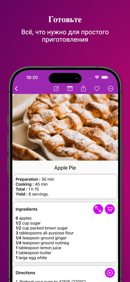 • Создавайте списки покупок на основе ингредиентов рецепта