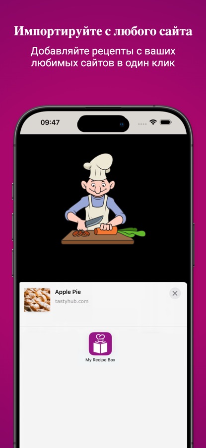 • Импортируйте рецепты с большинства кулинарных веб-сайтов.