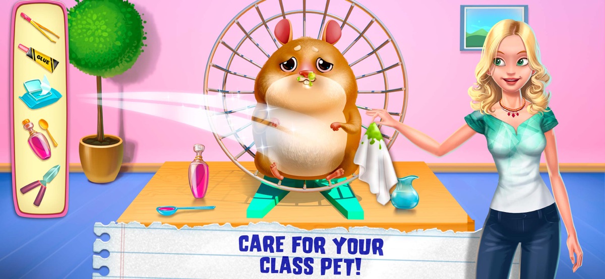 > Играй и ухаживай за пушистыми питомцами своего класса! Хомячки, кролики, черепашки и другие зверушки ждут тебя!