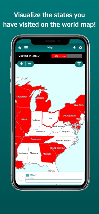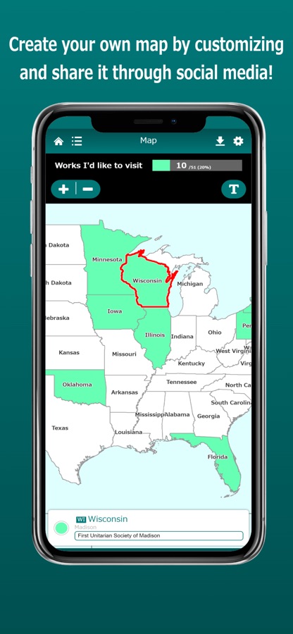 My United States Map — это удобное в использовании приложение для создания собственной карты, визуализирующее 50 штатов США и Вашингтон, где Вы были.