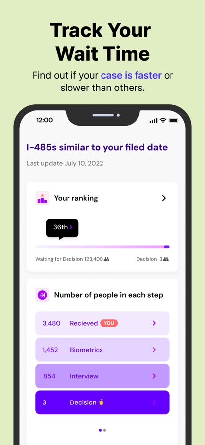 The USCIS app «Lawfully» also provides a comparison of your case progress with other similar cases. Check your case status online easily with the immigration case tracker for USCIS status instead of doing a complicated search every time.