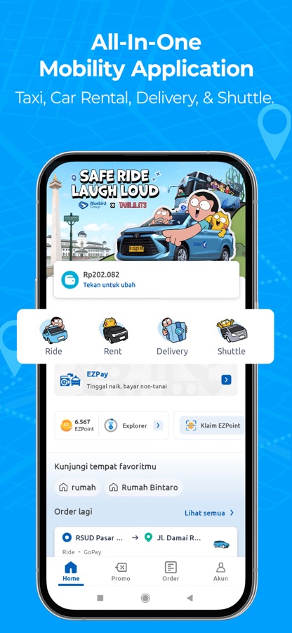 Join thousands of happy users and book a ride, rent cars, or send packages with MyBluebird, the trusted app for taxi, shuttle, and delivery. Save more with promo offers and cashless ease via EZPay. Enjoy fixed price bookings, airport transfers, and eco-friendly EV rentals like BYD. MyBluebird makes every journey comfortable, safe, and affordable—start riding today!