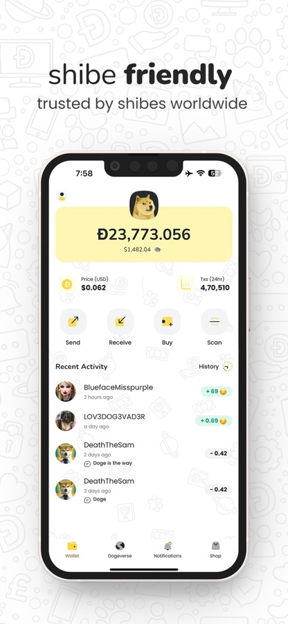 MyDoge is a free, secure, self-custodial social Dogecoin wallet. Our mission is to increase the number of daily Dogecoin transactions by building a community for Dogecoin enthusiasts to explore the Dogeverse and connect/meet with friends. With MyDoge you can buy, send, receive, and store your Dogecoin safely. You can also send & receive DOGE on X.com!