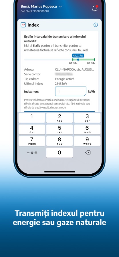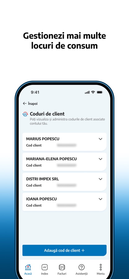 · Administrare cont client (adăugare /eliminare coduri de client și locuri de consum)
