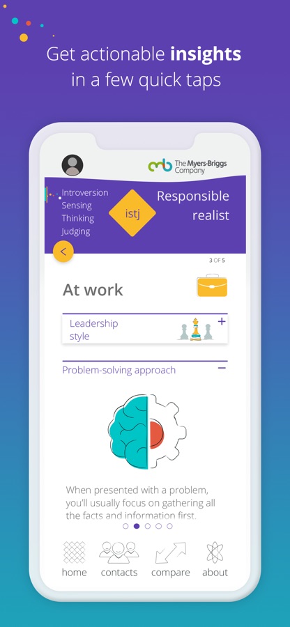 With the official Myers-Briggs app on your phone, you’ve got immediate access to MBTI type information. And that makes it easy to apply and use type in everyday situations.