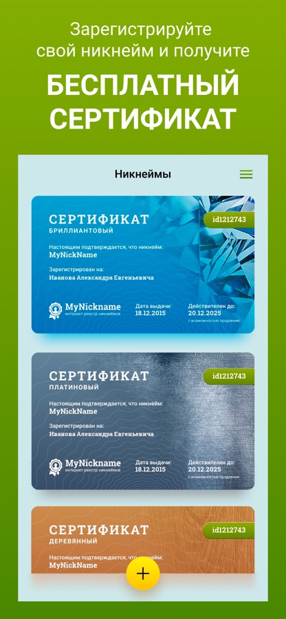 • Зарегистрируйте свой никнейм и получите сертификат.