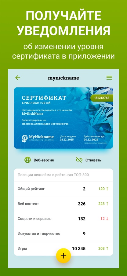 • Получайте уведомления об изменении уровня сертификата прямо в приложении.