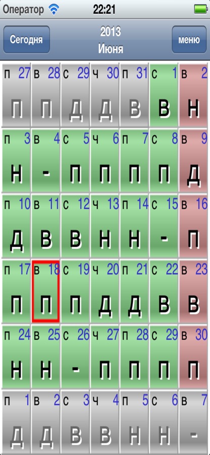 моясмена это календарь для людей, которые работают посменно. Среди его особенностей: