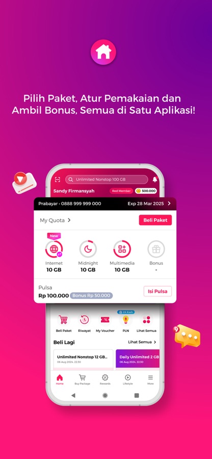 I. Cek pulsa, isi ulang, scan voucher data, beli paket data lebih mudah dengan tampilan baru.