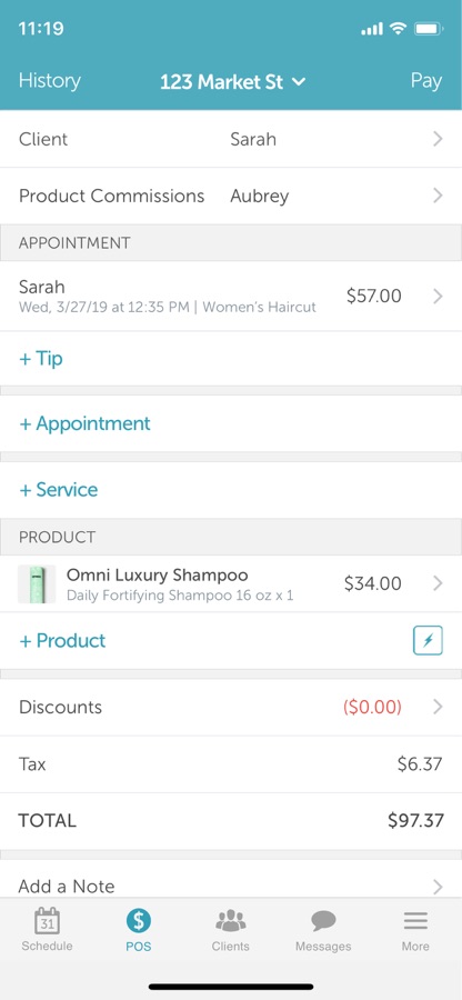 * Point-of-Sale (POS): Take payment right from your phone (sales tax tips, discounts, coupons, and staff compensation are all built-in). Easily track inventory and accept payments from clients for both services and retail products. Add tips, gift card purchases, packages,and additional services with just a tap. Need to apply a discount? Choose between a flat dollar amount or percentage off the total. Accept credit cards, cash, and checks. Scan bar codes (UPC) to add retail products and easily update stock levels. Pro tip: use our external Bluetooth card reader to swipe cards and speed up checkout.