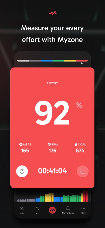 Myzone rewards effort over ability. Each device automatically updates how it records your effort, every time you progress through your goals. The five tailored effort zones make heart rate training easy to understand. Each zone is a percentage of your maximum heart rate, meaning that athletes and fitness newbies can exercise together to earn MEPs (Myzone Effort Points).
