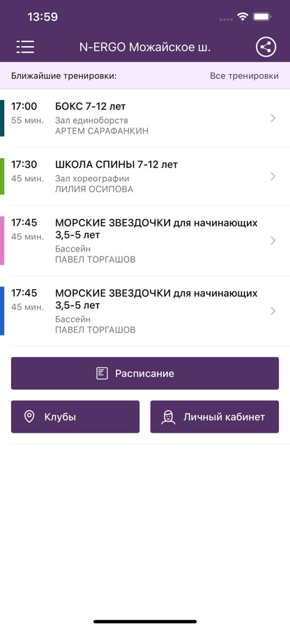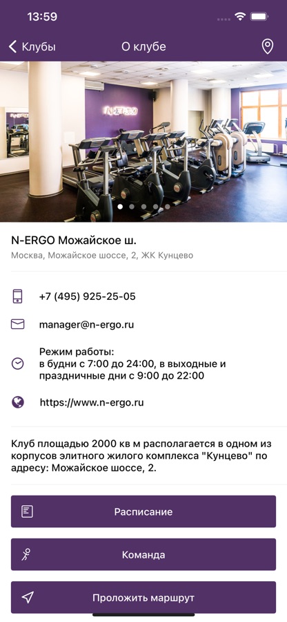 С помощью приложения вы можете следить за новостями, расписанием фитнес-клубов N-ERGO, оперативно получать уведомления об изменениях в расписании, интересных мероприятиях и специальных предложениях, записываться на персональные тренировки и оплачивать их.
