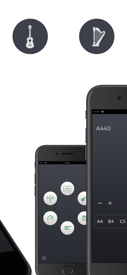 n-Track Tuner отлично работает как гитарный тюнер, скрипка, альт, виолончель, бас, фортепиано и духовые инструменты.
