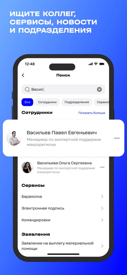 Приложение “На связи” — это самый удобный способ создать и согласовать командировку, найти контакты коллег и узнать новости компании.