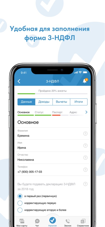 Налогия – удобный и современный сервис для онлайн подготовки и подачи налоговых деклараций для физических лиц. Наши специалисты заполнят декларацию за Вас и окажут помощь в спорных ситуациях с налоговой инспекцией. Вам больше не придется ходить в налоговую, следите за статусом отчетности и получением налогового вычета прямо в мобильном приложении.