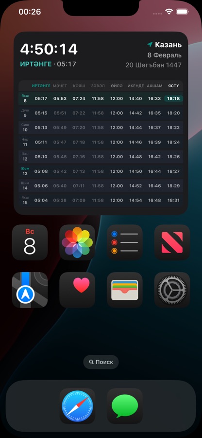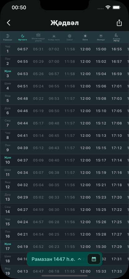 Әлеге программа (Татарстанда торган халкы өчен) dumrt.ru намаз вакытларын куллана.