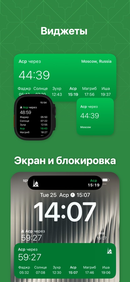 — Поддержка приложения Apple Watch с отсчётом и временем намаза