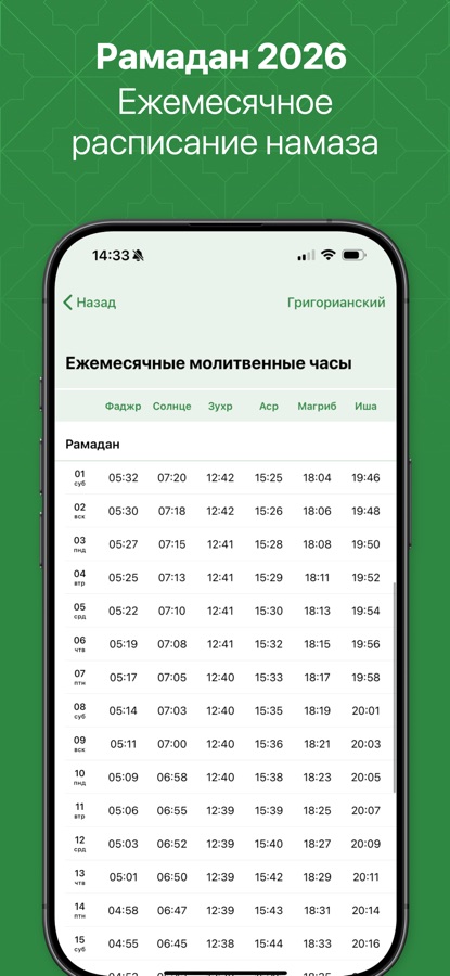 Расписание Рамадана 2026. Точные и стабильные времена молитвы (намаза) будильник Адхана напоминания о времени Азана и компас Киблы. информация о пользователе не требуется