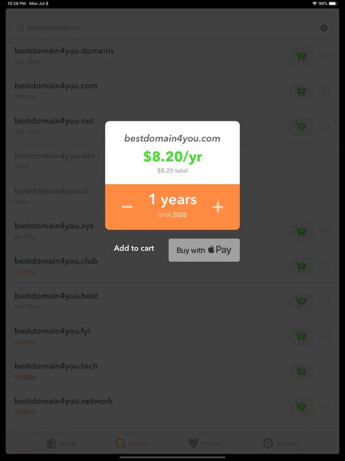 — Instant search, register, and renew domains