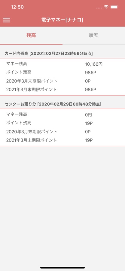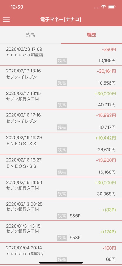 残高、履歴情報などはnanaco-netの公式サイトから取得表示しています。