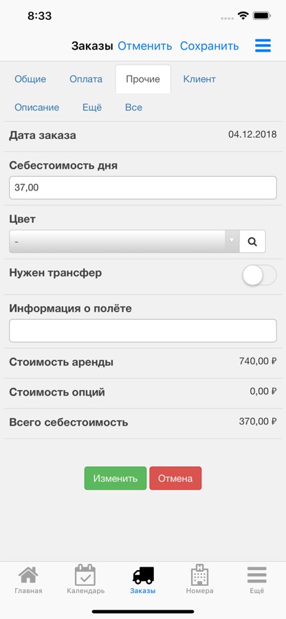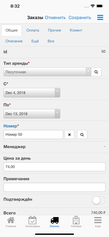 Это основной режим работы приложения. Стоимость заказа вычисляется как цена одного дня умноженная на количество дней или ночей в зависимости от настроек приложения (см. «Настройки» — «Мой профиль»).
