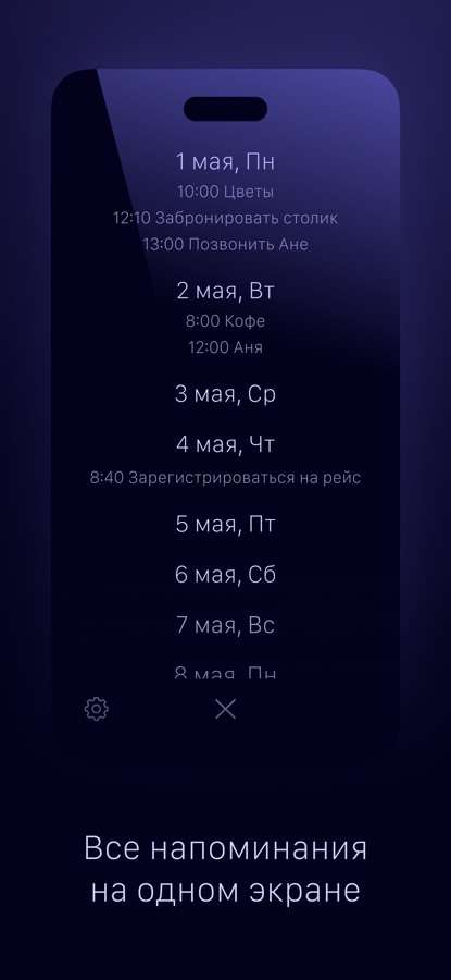 • Просматривайте список всех напоминаний.