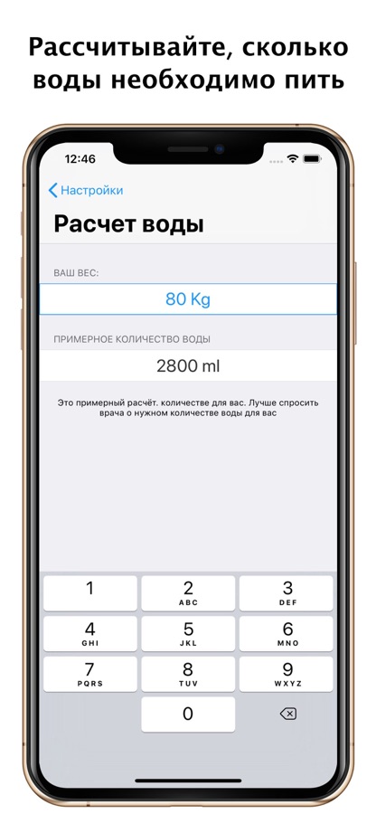 Если Вы не знаете, сколько Вам необходимо пить каждый день – это не проблема! В нашем приложении есть отличный “водный” калькулятор, чтобы помочь. Просто введите свой вес и Drink Water скажет, сколько воды необходимо Вашему телу в день.