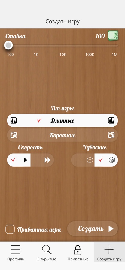 Создавайте игры с паролем, приглашайте друзей и играйте вместе. При создании игры без пароля любой игрок, находящийся в игре онлайн, может к Вам присоединиться играть в нарды. Если Вы хотите играть с друзьями, то создайте игру с паролем и пригласите их в нее.