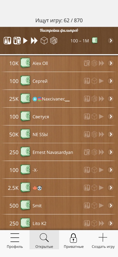 • Приватные (закрытые) игры с паролем и возможностью пригласить друга.