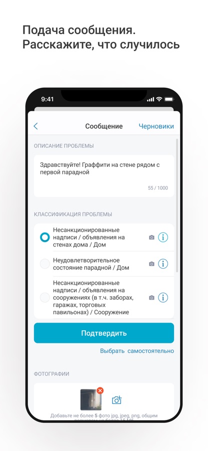 Самое полезное городское приложение. Раскажите о проблеме, и она не останется без внимания ответственых лиц.