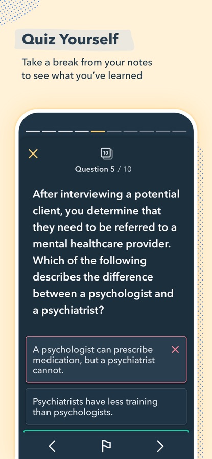 — All advanced study modes, including Build Your Own Quiz, Missed Question Quiz, and Level Up
