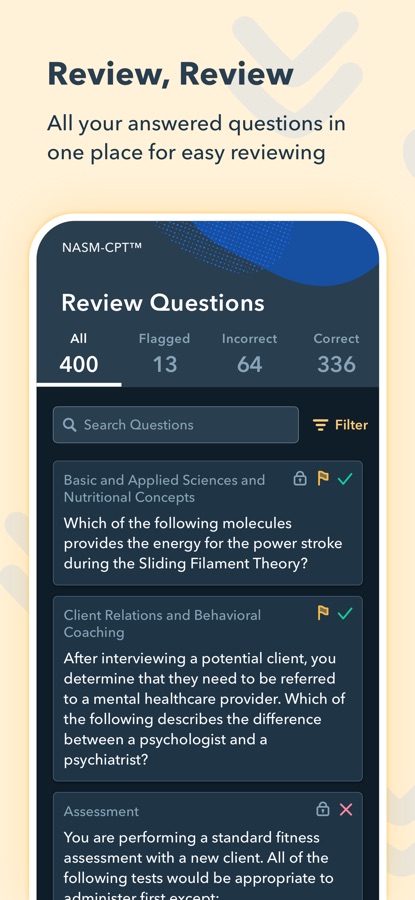 Since 2011, thousands of Personal Trainers have trusted Pocket Prep to help them succeed on the NASM CPT exam. Our questions are crafted by experts and align with the latest CPT Content Outline, ensuring you’re always studying the most relevant, up-to-date content.