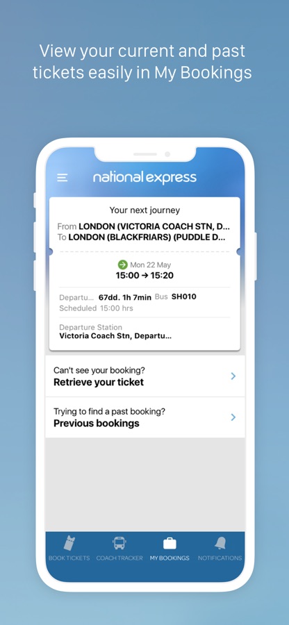 The brand new National Express Coach app makes managing travel on your mobile easy. Search for journeys, book and store tickets and track your coach in real time.