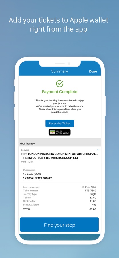 — Retrieve your ticket booked on desktop, tablet or mobile to use on your device, or add tickets directly into your Apple wallet