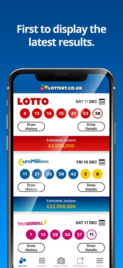 Get the latest UK Lottery results within seconds of the draws taking place. This easy-to-use app shows the National Lottery numbers, prize breakdown information and jackpots for the following lotteries:
