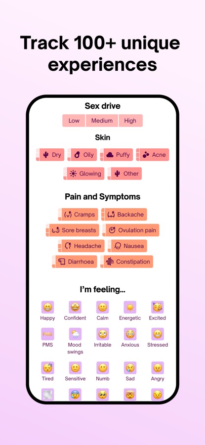 ○ The NC° app features customizable mood trackers, great for getting to know your body better.