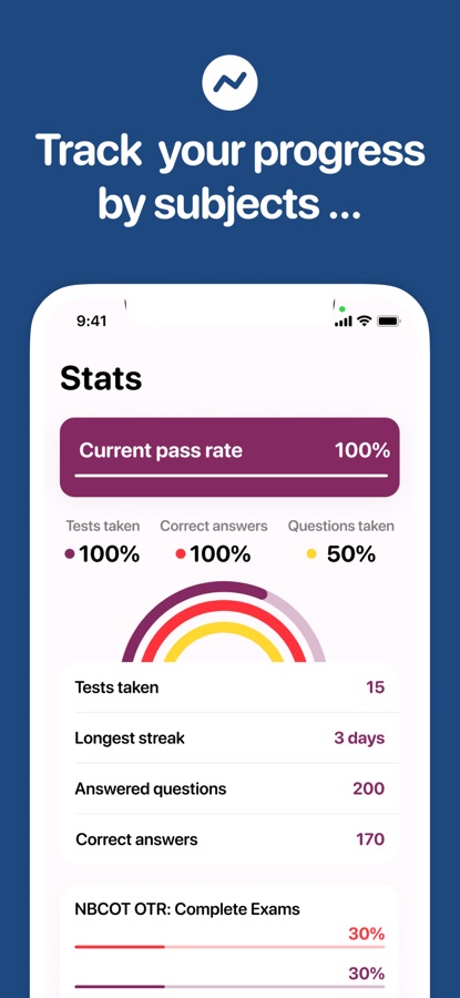 Pass your NBCOT OTR and COTA exams with flying colors! Boost your confidence in passing the first time with our mobile app and a personal study plan based on your current skill and requirements.