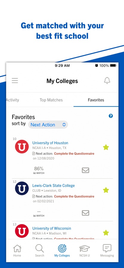 NCSA Next College Student Athlete helps student-athletes connect with college coaches. Our iPhone app lets you take control of your recruiting wherever you are, right from your device with a full suite of tools you won’t find anywhere else. And when you’re ready, NCSA reviews your profile to verify your information. There’s more: