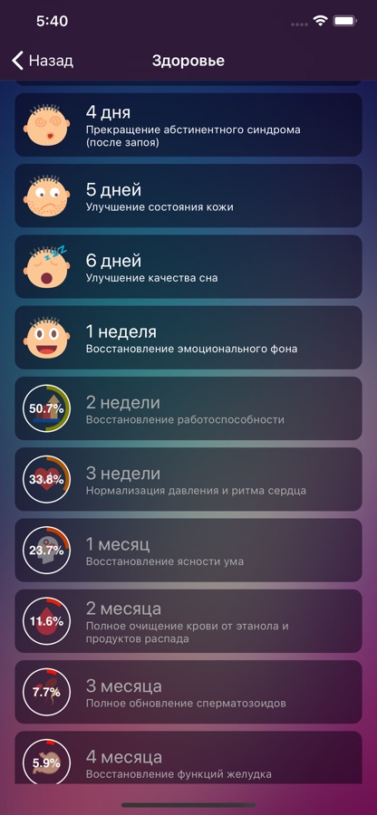 Приложение позволяет контролировать время, прошедшее с момента последнего употребления алкоголя.