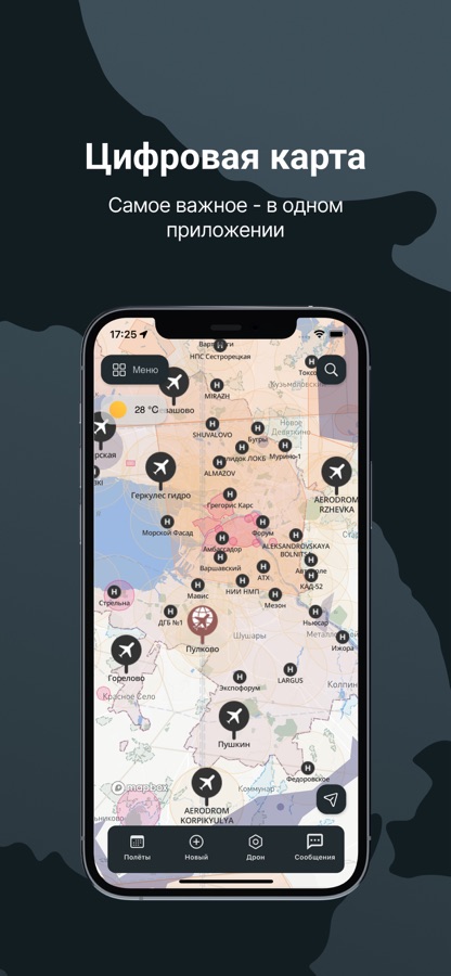 Всё необходимое для полета дрона в одном приложении: управление, фото- и видеосъёмка, цифровая карта ограничений и инструмент для легальных полётов.