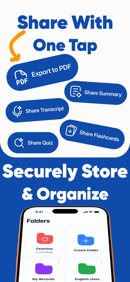 • Export your notes, summaries, quizzes, and flashcards to PDF.