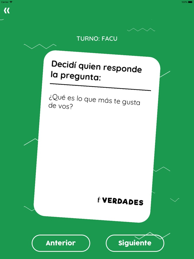 En nuestra aplicación también encontrarás compras dentro de la app, para que puedas personalizar aún más tu experiencia de juego y crear tus propias cartas. Y recorda que, si no te gusta alguna pregunta, no tienes que sentarte obligado a responderla, simplemente pasa a la siguiente.