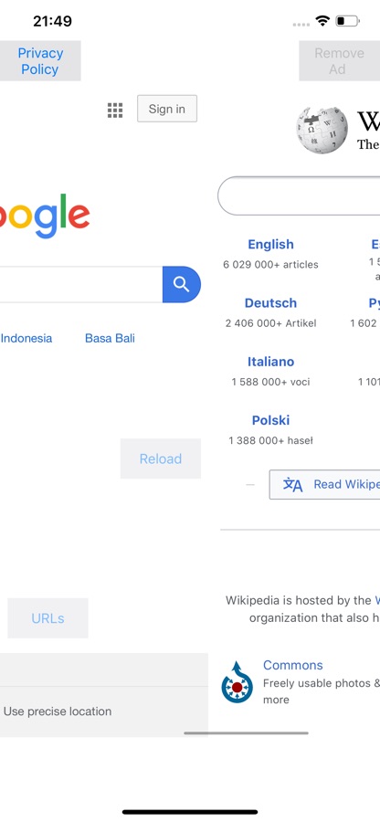 Простой веб-браузер, который загружает несколько URL-адресов, введенных в конце строки, и переключает веб-страницы, проводя пальцем влево и вправо.