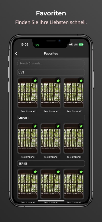 * Fügen Sie Filme, Serien, Live-TV und Videos zu Ihren Favoriten für schnellen Zugriff hinzu