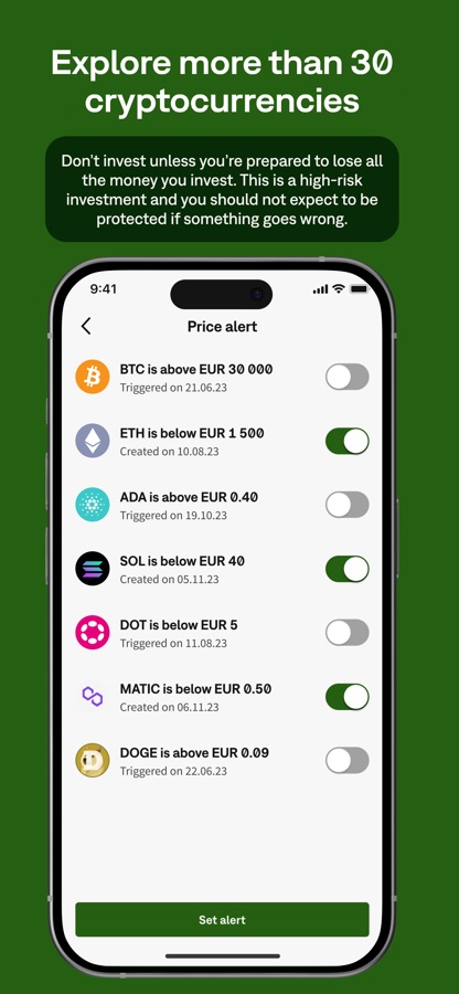 · Take advantage of helpful features like crypto price alerts and automated orders.