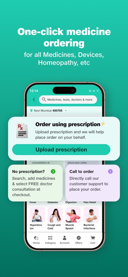 Use the Netmeds healthcare app to Purchase Healthcare Products, Talk to a Doctor Online, Book Lab Tests Online, Store Your Medical Records, Track Your Order, Rate Items, Refer Your Friends to Earn, or Contact Us, on the go!